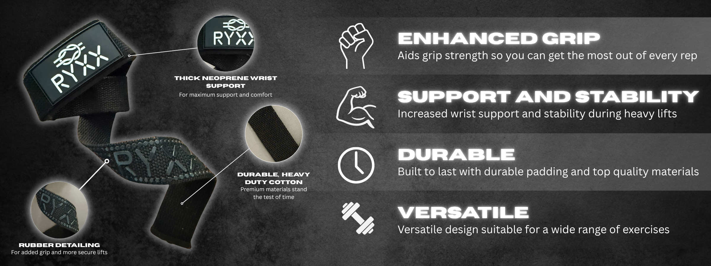 Whether you’re into bodybuilding, CrossFit, powerlifting, or strength training, RYXX lifting straps enhance grip, boost power, and support you through every rep.