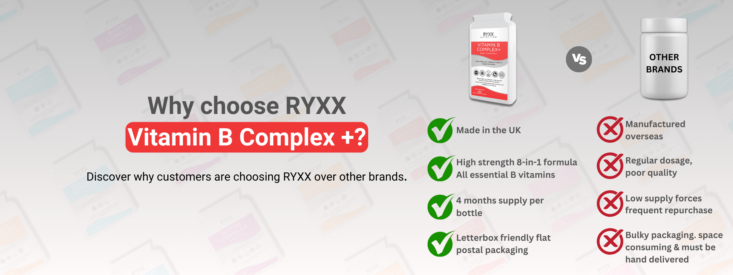 Yes, Vitamin B Complex is generally safe to take with other vitamins or minerals. However, if you're combining it with another multivitamin or supplement containing B vitamins, ensure you're not exceeding recommended daily limits. We actually sell this product alongside our Vitamin D3 and D3+K2 products as part of our Immunity and Immunity Plus Bundles.
